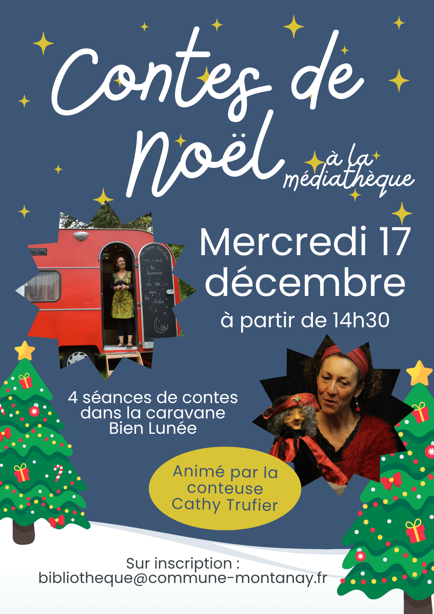 Venez rencontrer la conteuse Cathy Trufier dans sa caravane bien lunée le mercredi 17 décembre à partir de 14h à la médiathèque. Séances de contes ouvert à tous et inscription fortement recommandé par mail : bibliotheque@commune-montanay.fr